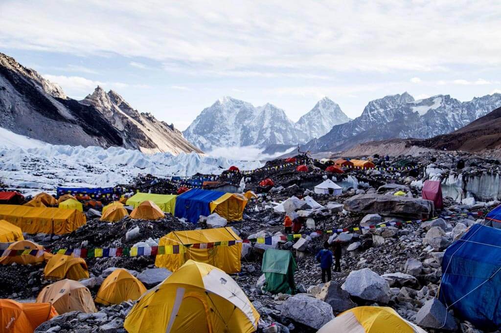Today we head from Gorakshep and cross the moraine of the Khumbu Glacier. A little further along the trail we can see the crest of the north ridge of Everest, as well as Mt. Pumori, Mt. Mahalangur, Mt. Lingtren, Mt. Khumbutse & Mt. Nuptse. A short climb takes us to Thangma Riju from where we have 360 degree panoramic views of the snow capped mountains. After a steep ascent, and crossing the Changri Glacier, we get our first our first look at Kala Patthar, a rocky black knoll below Mt. Pumori. After reaching Gorakshep we have some fantastic panoramic views of the surrounding snow covered peaks, including Mt. Everest. Upon reaching Mount Everest Base Camp we have time to explore and contemplate how the early mountaineers felt when planning their climb to the summit. From EBC we head back to Gorakshep for the night.