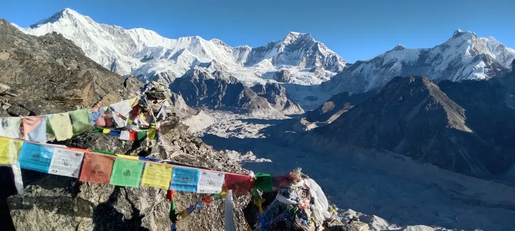 Next, you cross the Cho La Pass on your way to Everest Base Camp, a place where dreams come true for mountaineers and trekkers alike. Standing at the foot of the world’s highest peak, you’ll feel a deep sense of accomplishment.
