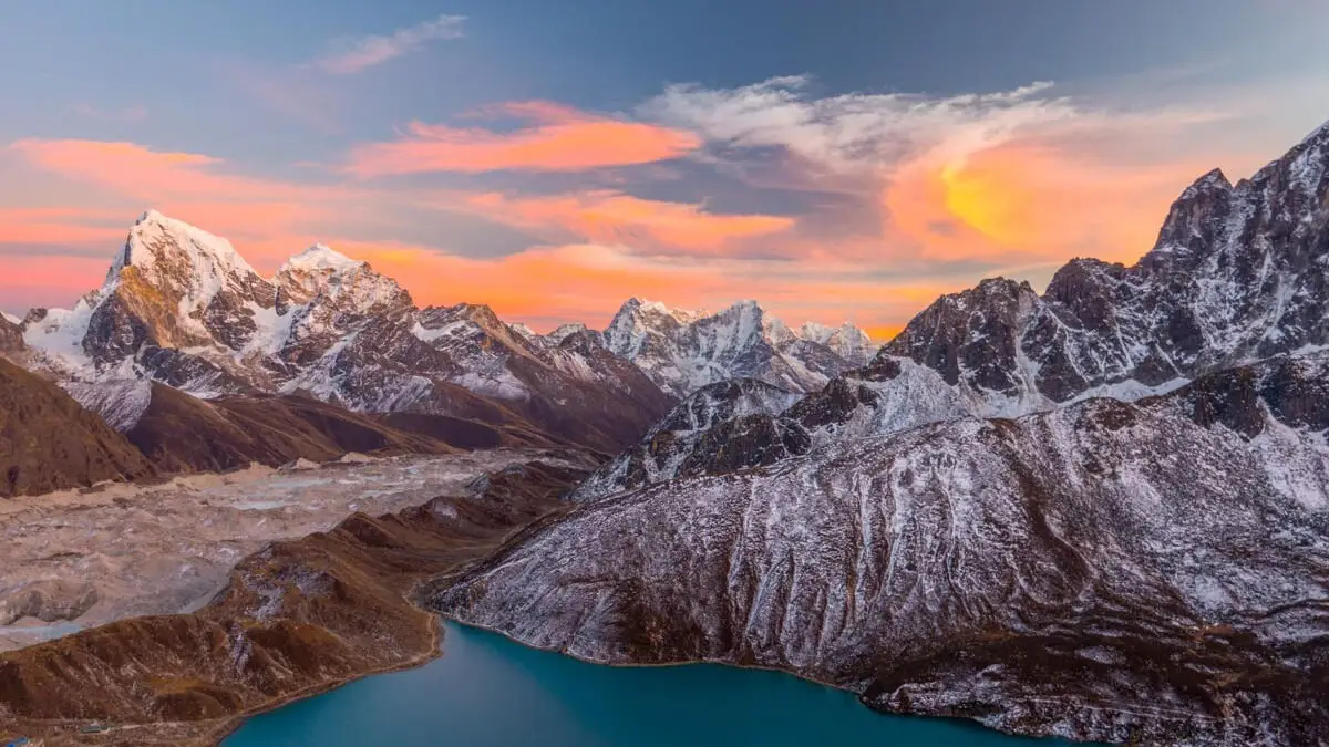 Today, you'll trek from Machhermo to Gokyo, a stunning village situated by the famous Gokyo Lakes. After reaching Gokyo at 4,750 meters, enjoy a break for lunch. Post-lunch, you'll continue to the Fifth Lake, one of the highest lakes in the region. This serene lake, surrounded by towering peaks, offers breathtaking views of Everest, Cho Oyu, and Makalu. After exploring, return to Gokyo for the night.
