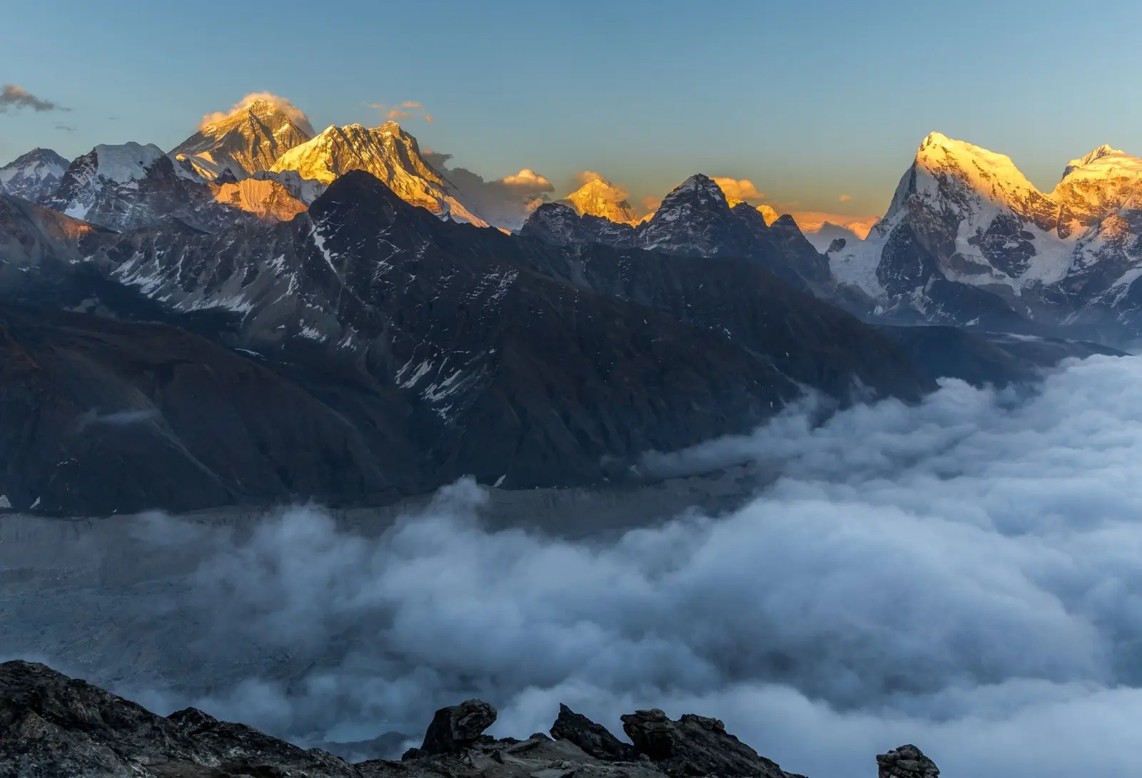 Today, you’ll hike to the summit of Gokyo Ri at 5,483 meters. The climb is steep, but once at the top, you will be rewarded with some of the most spectacular views of the Himalayas, including Mount Everest, Lhotse, Makalu, and Cho Oyu. After soaking in the views, return to Gokyo for the evening and rest. This hike offers incredible photographic opportunities and a sense of achievement.