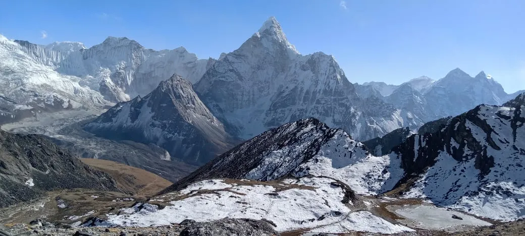 On this day, you will hike up to Gokyo Ri, the highlight of the trek. Gokyo Ri is a viewpoint offering one of the best panoramic views in the Himalayas, with sights of Mount Everest, Lhotse, Makalu, and the stunning Gokyo Lakes below. The trek to the summit of Gokyo Ri takes 3-4 hours. After soaking in the views, you’ll descend and continue the trek to Machhermo, where you’ll stay for the night. This section of the trek takes about 3-4 hours.