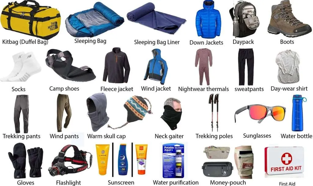 - Warm jacket – down jacket and windproof jacket (alternatively bring a raincoat &umbrella)